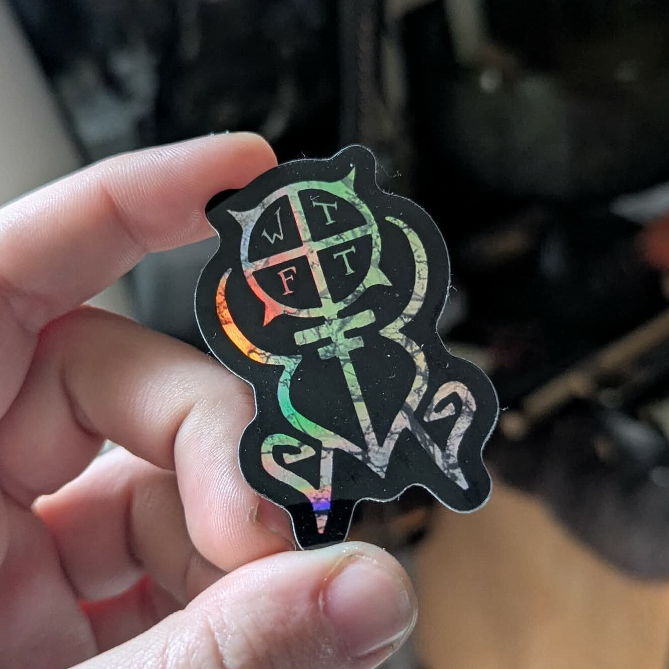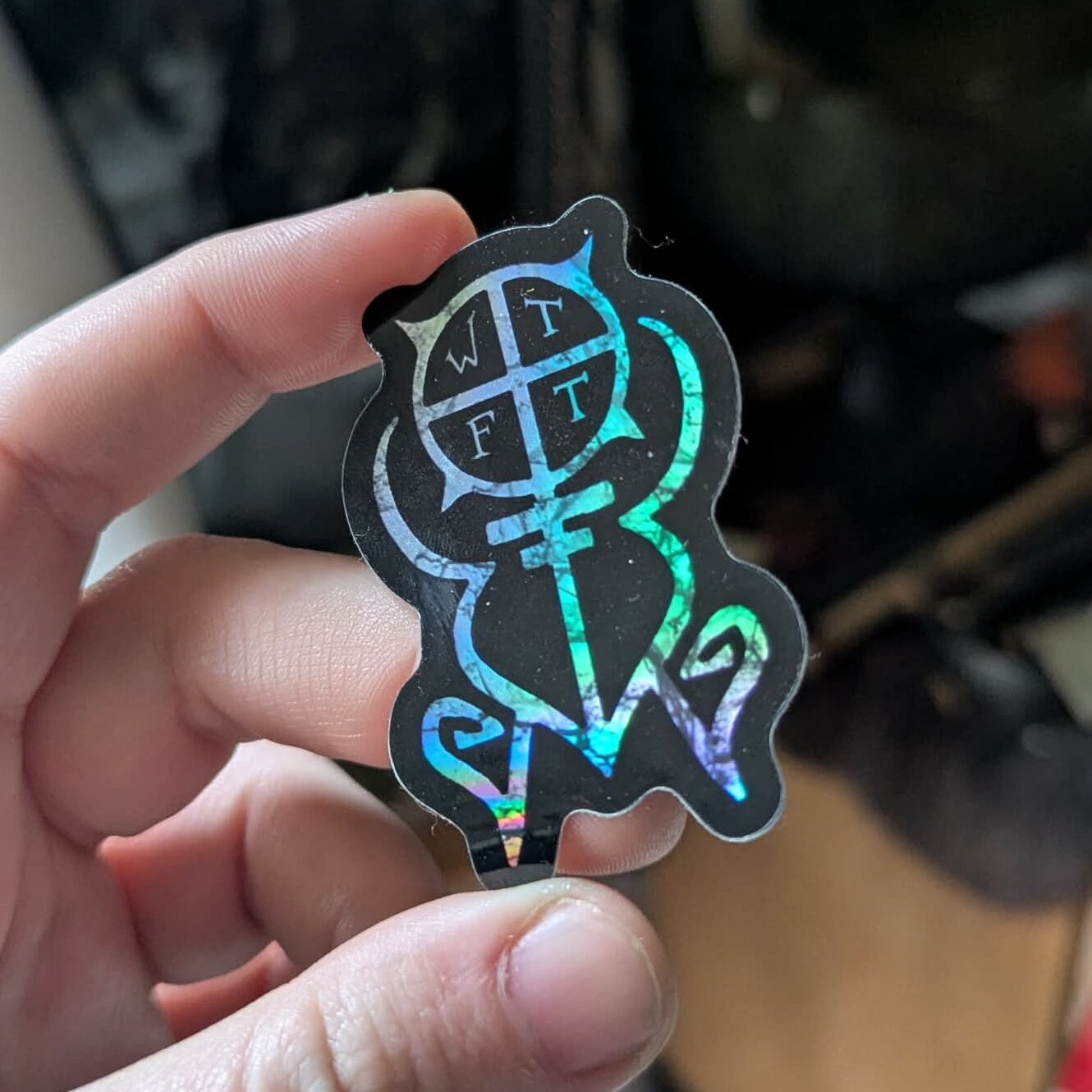 A rainbow holographic sticker depicting The Liminal Sigil. Refer to photos for different angles of the effect.